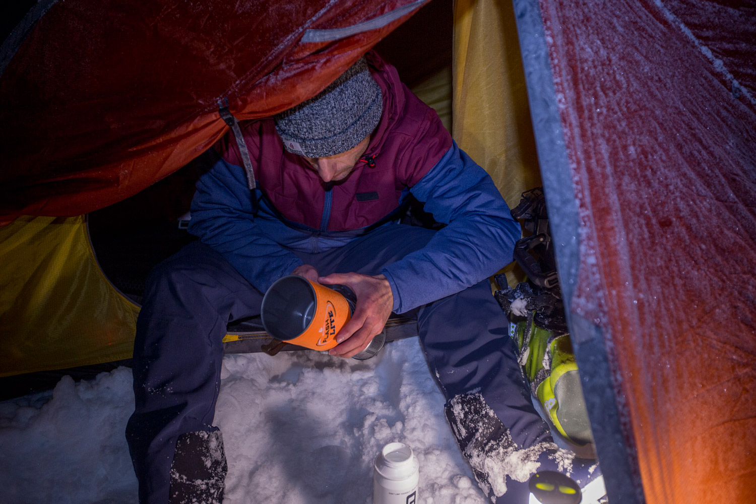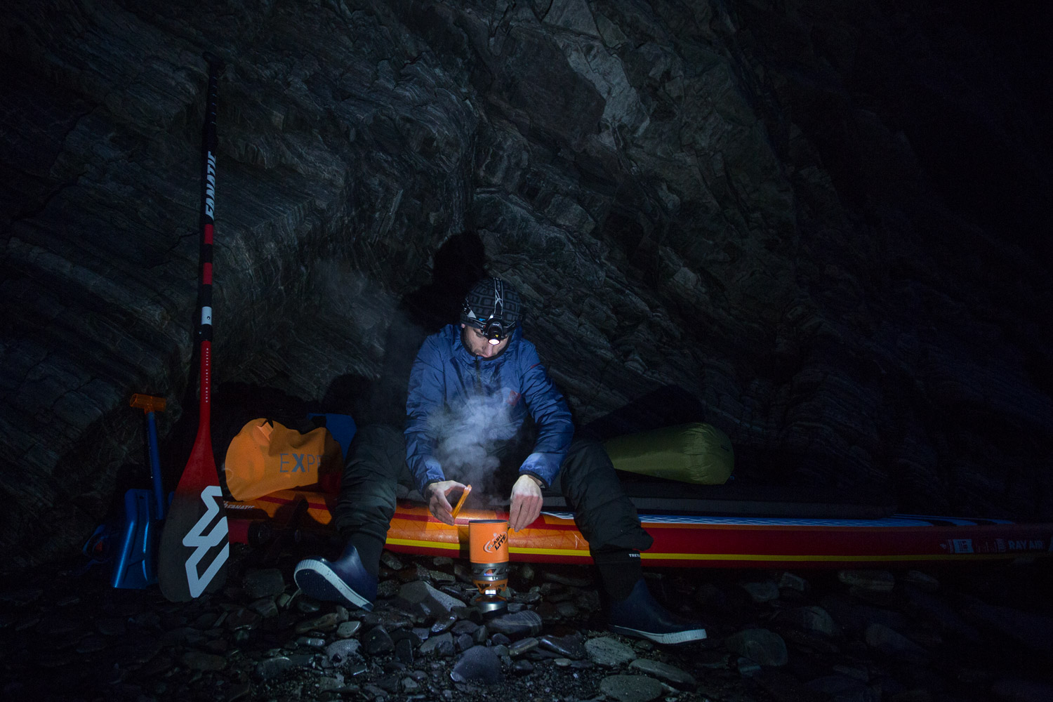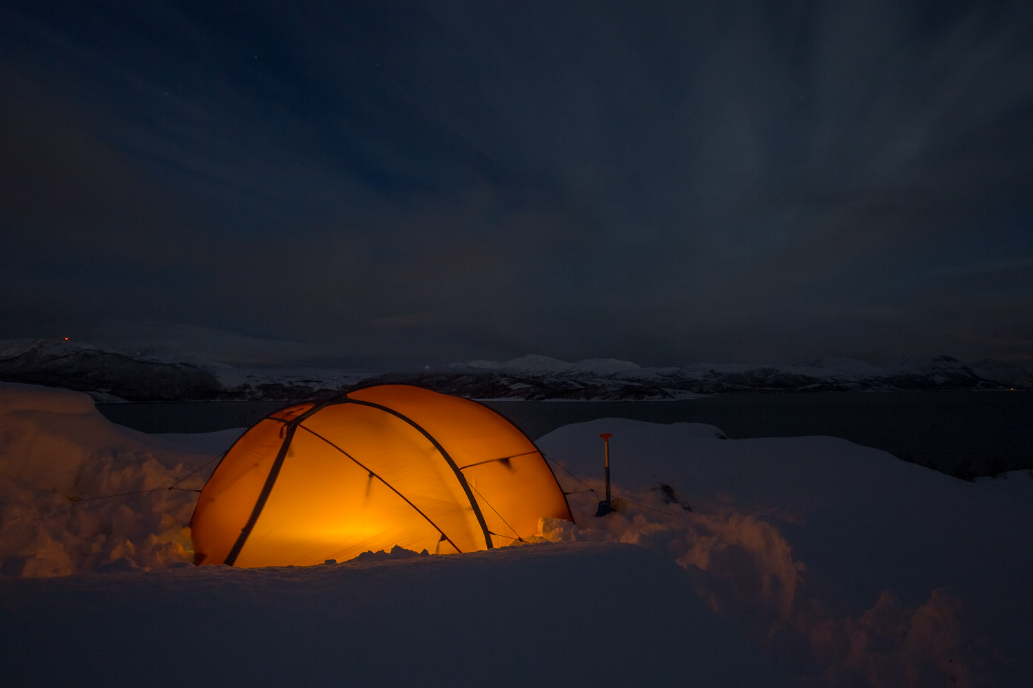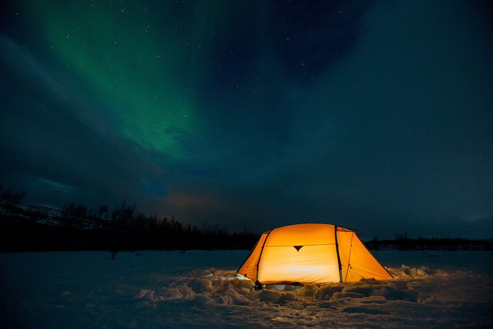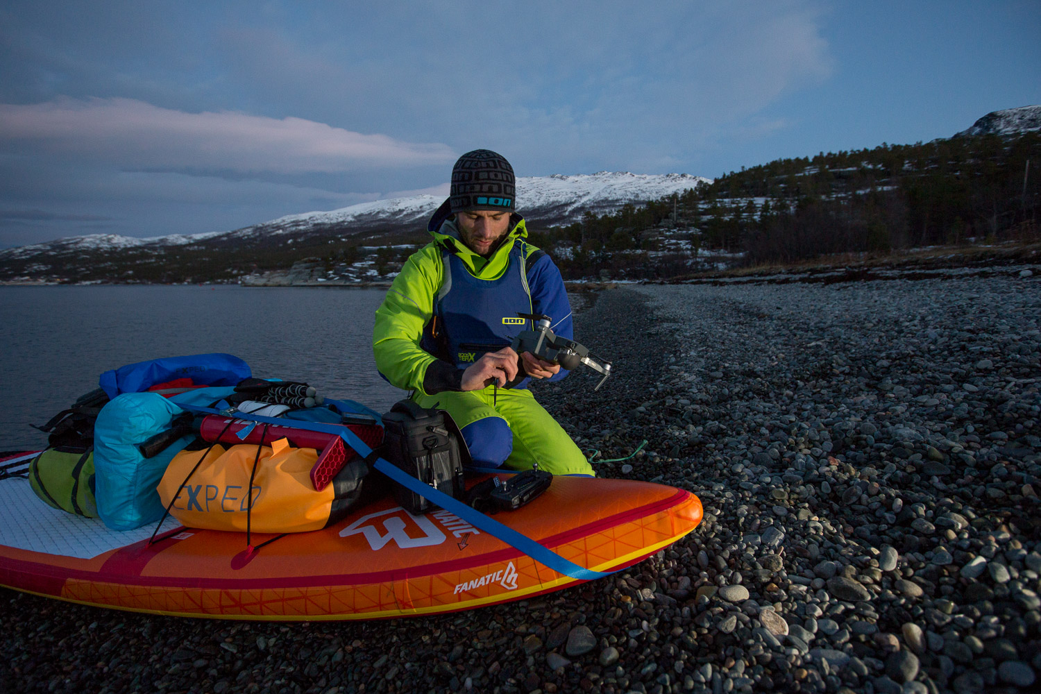 Var det ikke for mørket, så visste vi ikke om sternene. Gäbe es das Dunkel nicht, wüssten wir nicht von den Sternen. Meine Mikroexpedition sollte nicht während den warmen Sommermonaten stattfinden. Ich brauchte wieder einmal den Kampf mit den Elementen. Warum also nicht die Herausforderungen annehmen und Norwegen in der dunkelsten Jahreszeit erleben? Nachdem ich in Tromsø von einem Schneesturm empfangen wurde und die Temperaturen ins Bodenlose fielen, hinterfragte ich genau diese Entscheidung mit jedem Paddelschlag: Wieso tue ich mir das nur an? Bei Minustemperaturen aus dem Zelt kriechen, um danach bis zu zehn Stunden durch die Dunkelheit paddeln zu können. Ja wenn das nicht Spass und Freude verspricht. Peitschende Winde, welche das Wasser zu Wellenbergen auftürmen und mein SUP Board beinahe zum kentern bringen. Toll, ein Sturz könnte das Ende meiner Expedition bedeuten, denn aus Nässe und Kälte wird bekanntlich Eis. Doch genau da lag die Faszination meiner Reise verborgen. Die Momente, als sich mein Körper nach den ersten Paddelschlägen langsam aufwärmte, waren Freudetänze für Muskel und Geist. Die Dämmerung welche sich jeden Tag für ein paar Stunden über das Land legte, war ein Geschenk der Sonne, welches mich jeden Tag aufmunterte. Der Rückenwind, der mich zusammen mit der einsetzenden Ebbe vorantrieb, war Entspannung pur. Und nachdem sich die Wolken nach einer langen, kräfteraubenden Woche lichteten und ich das Nordlicht zum ersten Mal in meinem Leben sah, war ich einfach nur glücklich.